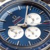 On the long part of the strap, you will find the “TDC” initials surrounded by the lunar craters and rocks. On the short end of the strap, you will find an interpretation of the eagle from the Apollo 17 mission patch. The gray strap has hand-painted black sides and black stitching to match the black dial and bezel of the Swiss movement fake Omega Speedmaster Moonwatch.
